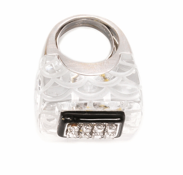 Lotto 333 | ANELLO, DAVID WEBB, IN ORO BIANCO, PLATINO, ONICE, CRISTALLO DI ROCCA E...