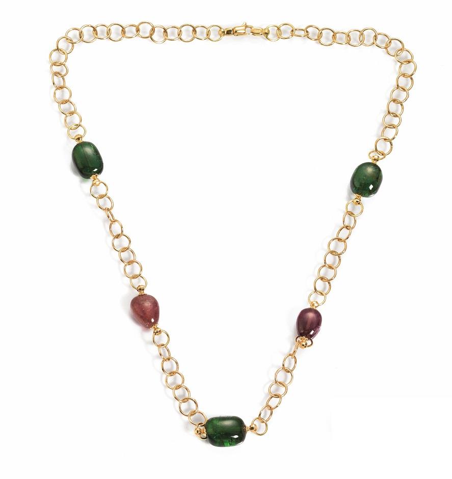 COLLANA IN ORO GIALLO E TORMALINErealizzata ad una fila di maglie rotonde...