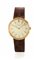 Cassa in oro liscio con fondello a scatto, anse sulla lunetta posteriore, vetro plastica. Quadrante argentè con indici applicati a bastone, lancette ad ago. Movimento firmato a carica manuale. Cinturino in pelle con fibbia ad ardiglione Patek in oro 18 kt. Diam. mm 34