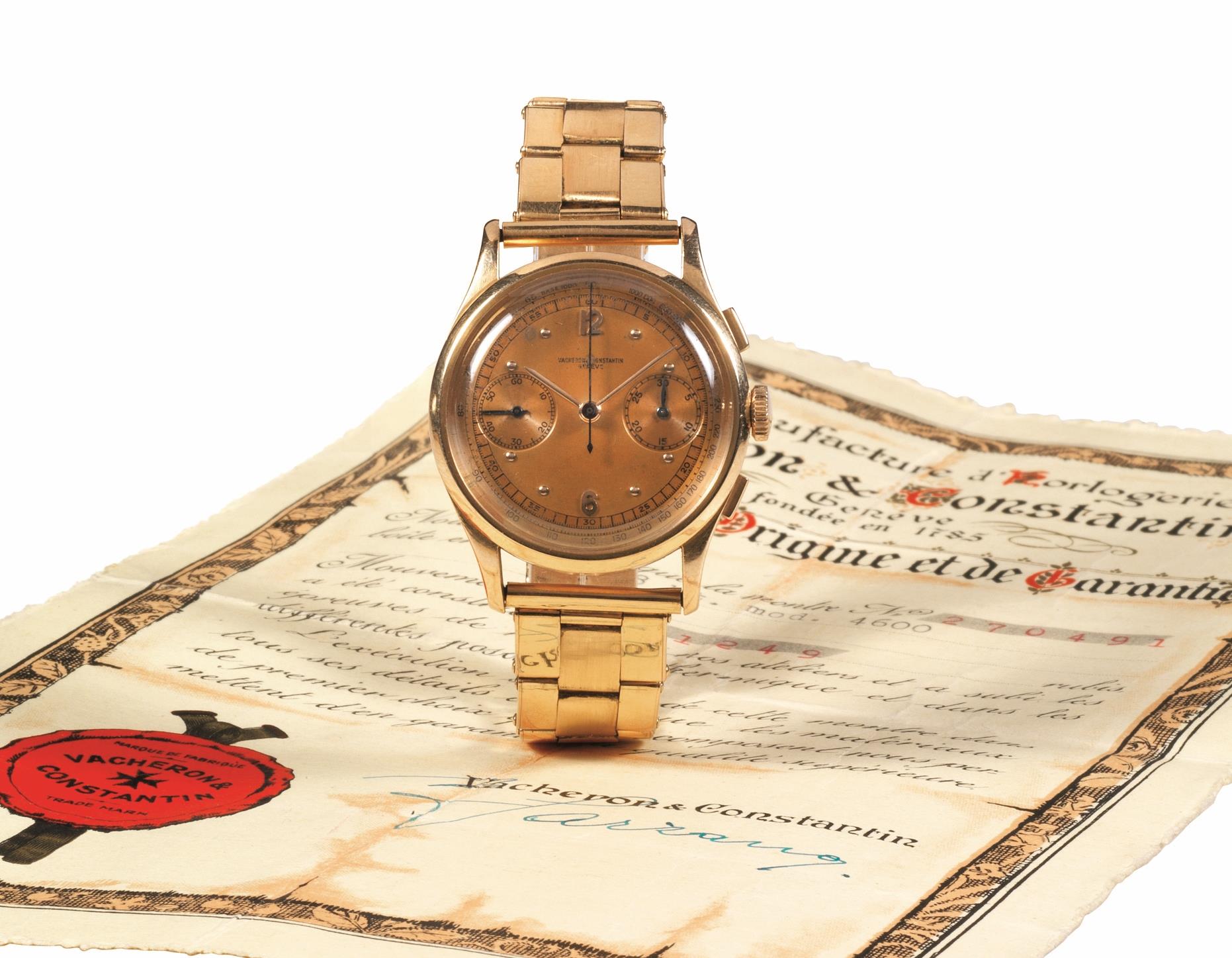 OROLOGIO DA POLSO CON CRONOGRAFO VACHERON & CONSTANTIN REF. 4600, N. 270'491, MOV. N. 431'249, 1940 CIRCA, IN ORO ROSA, CON GARANZIA