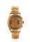 Cassa in tre corpi con fondello a scatto, pulsanti cronografici rettangolari, anse curve, vetro plastica. Quadrante champagne con numeri arabi e indici puntiformi applicati, scala tachimetrica periferica, due quadranti ausiliari a ore 3 e 9 rispettivamente con registro dei 30 minuti e secondi continui, lancette ad ago, secondi cronografici neri al centro. Movimento a carica manuale firmato e numerato. Bracciale a maglie elastiche rivettate con chiusura deployante in oro rosa non pertinente. Diam. mm 34,5