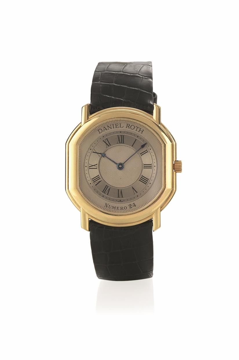 OROLOGIO DA POLSO DANIEL ROTH, NUMERO 21, IN ORO ROSA 18 KTCassa sagomata con...