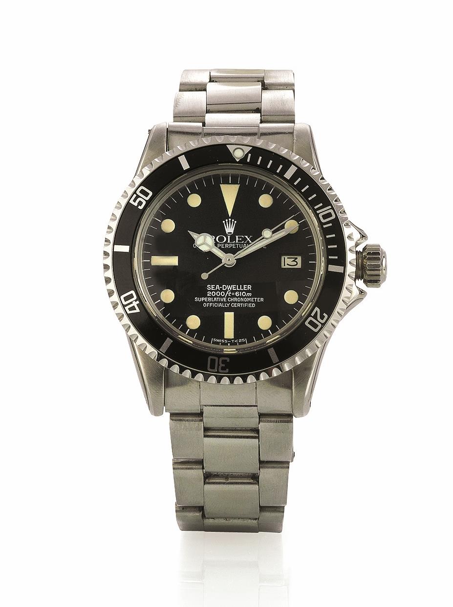 OROLOGIO DA POLSO ROLEX OYSTER PERPETUAL DATE SEA-DWELLER 2000ft- 610m, REF. 1665, SERIALE 5'231'706, 1977 CIRCA, CON GARANZIA E ACCESSORI