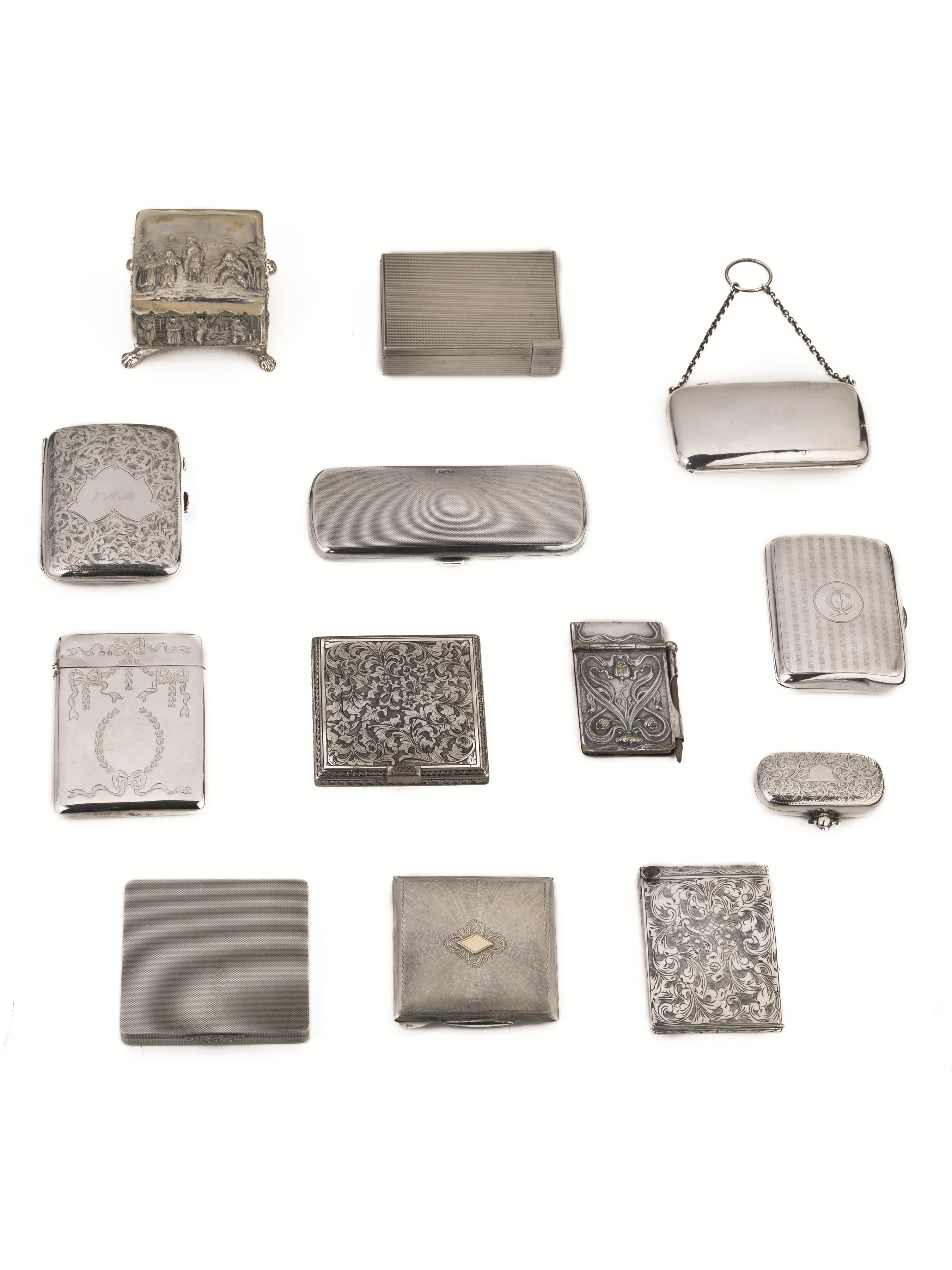 QUATTORDICI FRA SCATOLINE, FIASCHETTE, PORTA OCCHIALI, PORTA CIPRIA E CARNET DA BALLO, IN PARTE INGHILTERRA SECOLO XX