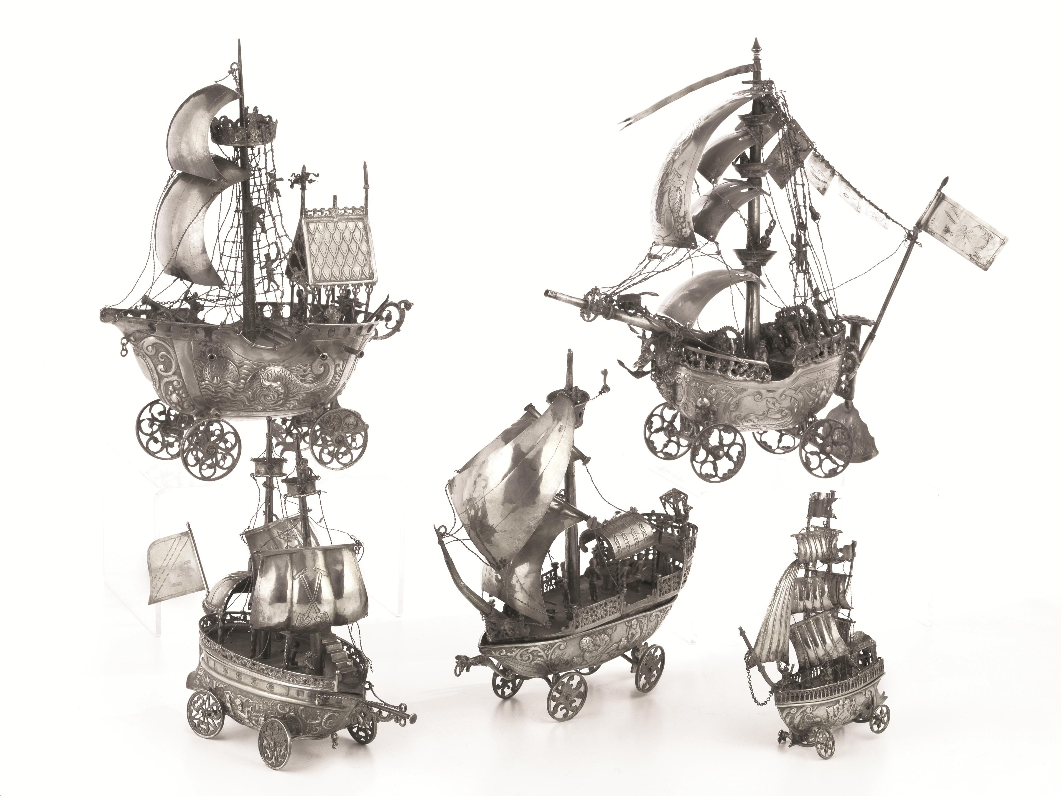 TRE MODELLINI DI VASCELLO, HANAU, FINE SECOLO XIX, ARGENTIERE LUDWIG NERESHEIMER & CO