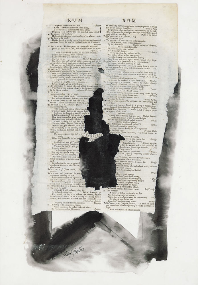 PAUL JENKINS Kansas City 1923 Visiting Shaman, (1986) inchiostro e collage su carta cm. 51x35,5; firma in basso al centro.