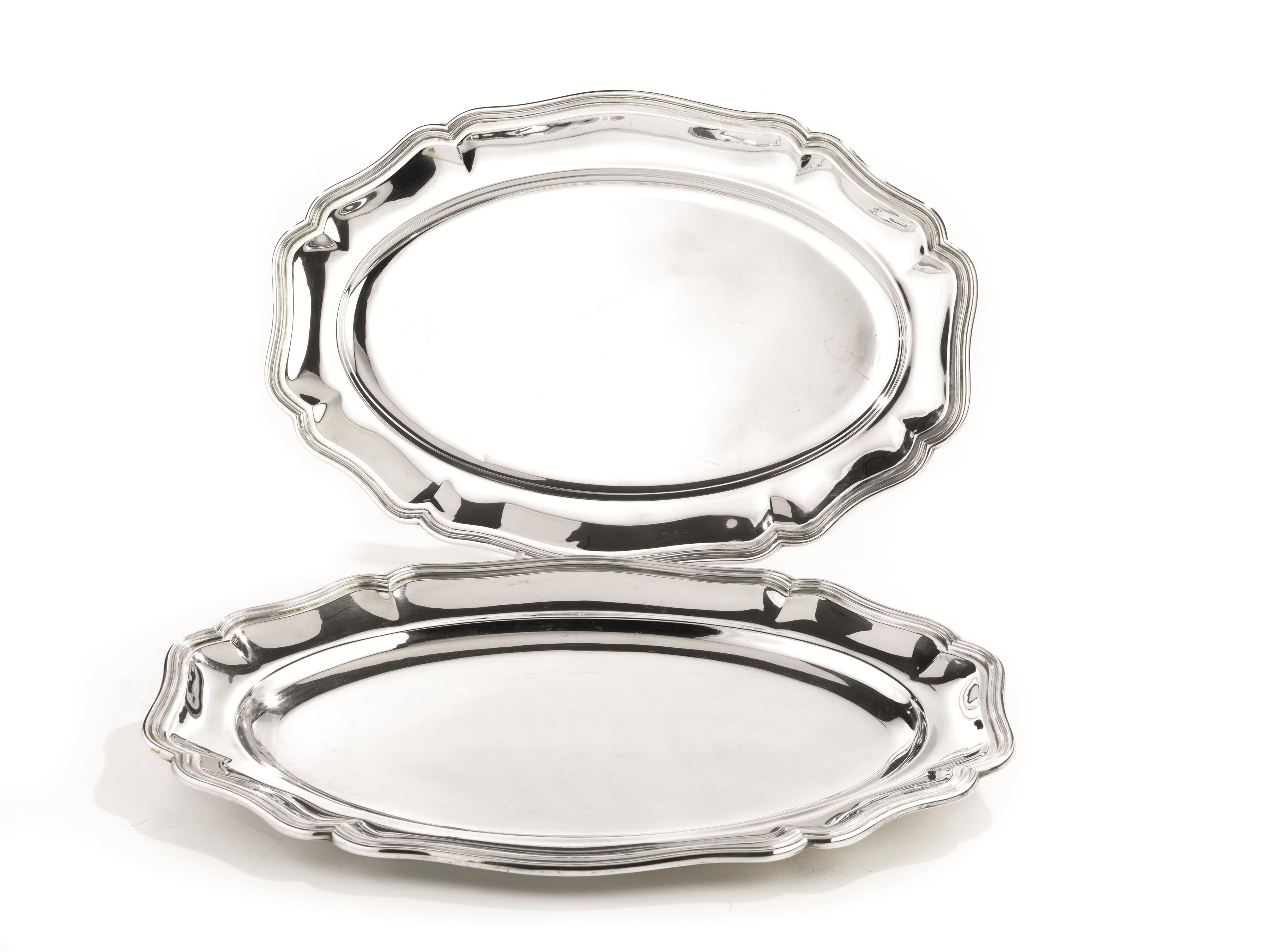 Lotto 185 | COPPIA DI VASSOI OVALI, SECOLO XXin argento con tese sagomate, cm 49x30, g...