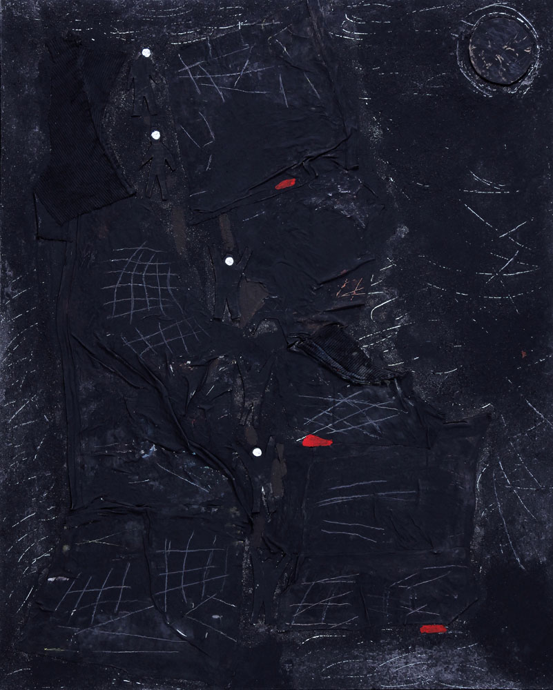 GASTONE BIGGI Roma 12/02/1925 Memorie del sottosuolo, 2006 tempera (tecnica mista e collage) su tela cm. 100x80, firma, titolo e anno al retro, opera registrata presso l'Archivio Gastone Biggi come da dichiarazione su foto.