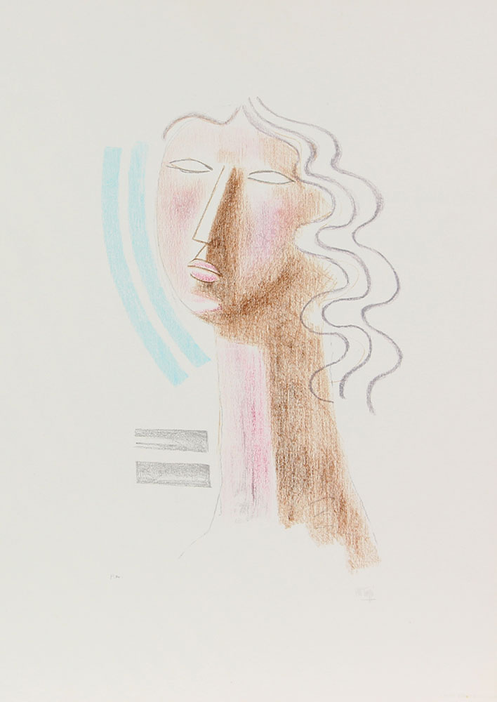 Tozzi Mario Volto litografia su carta, cm. 70x50, es. prova d'autore firmata...