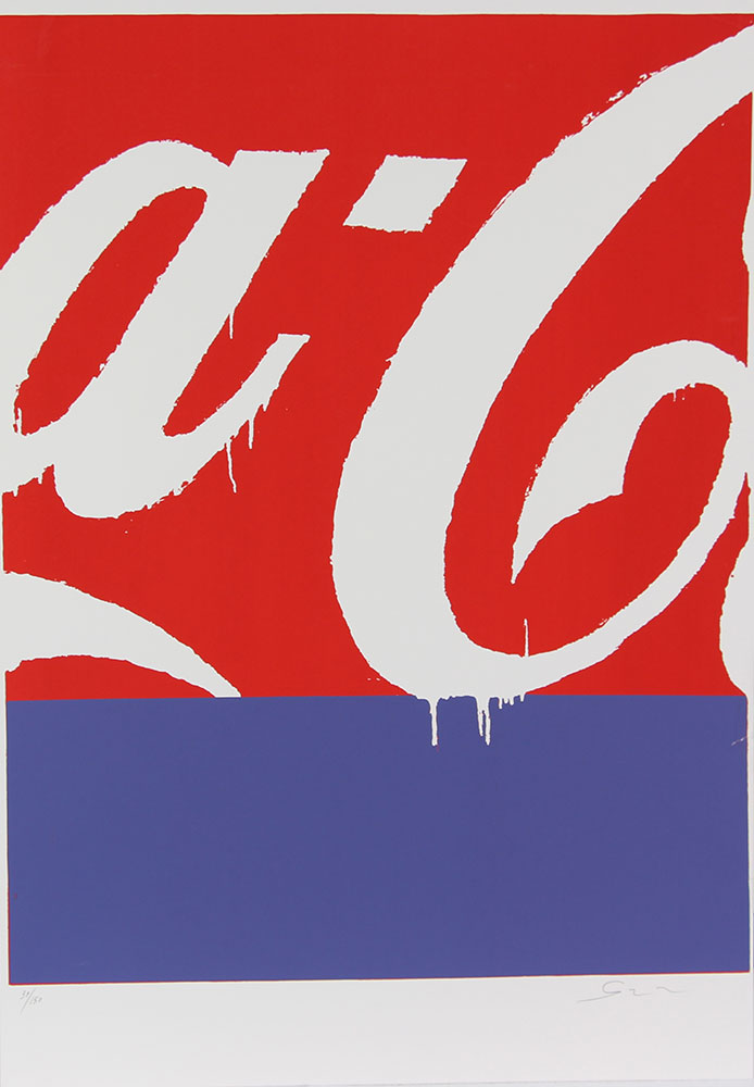 Schifano Mario Coca-Cola serigrafia su carta Fabriano, cm. 100x70, es. 30/150 firmata in basso a destra, timbro a secco "Mastrogiacomo Editore Padova" in basso a sinistra, l'opera presenta due strappi al margine destro in basso e una leggera stropicciatura nello spigolo in alto a destra senza cornice