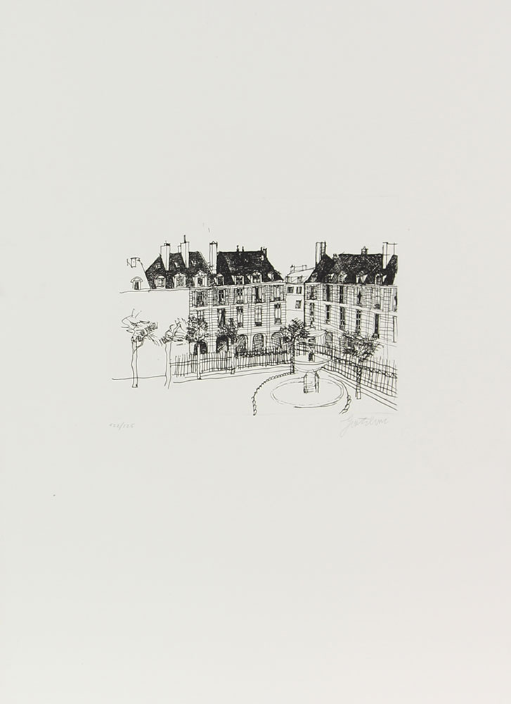 Gentilini Franco Casa di Victor Hugo a Parigi acquaforte su carta, cm. 70x50 (lastra cm. 21x27), es. 122/125 firmata in basso a destra, timbro a secco "Graphis Arte" di Livorno in basso a destra senza cornice