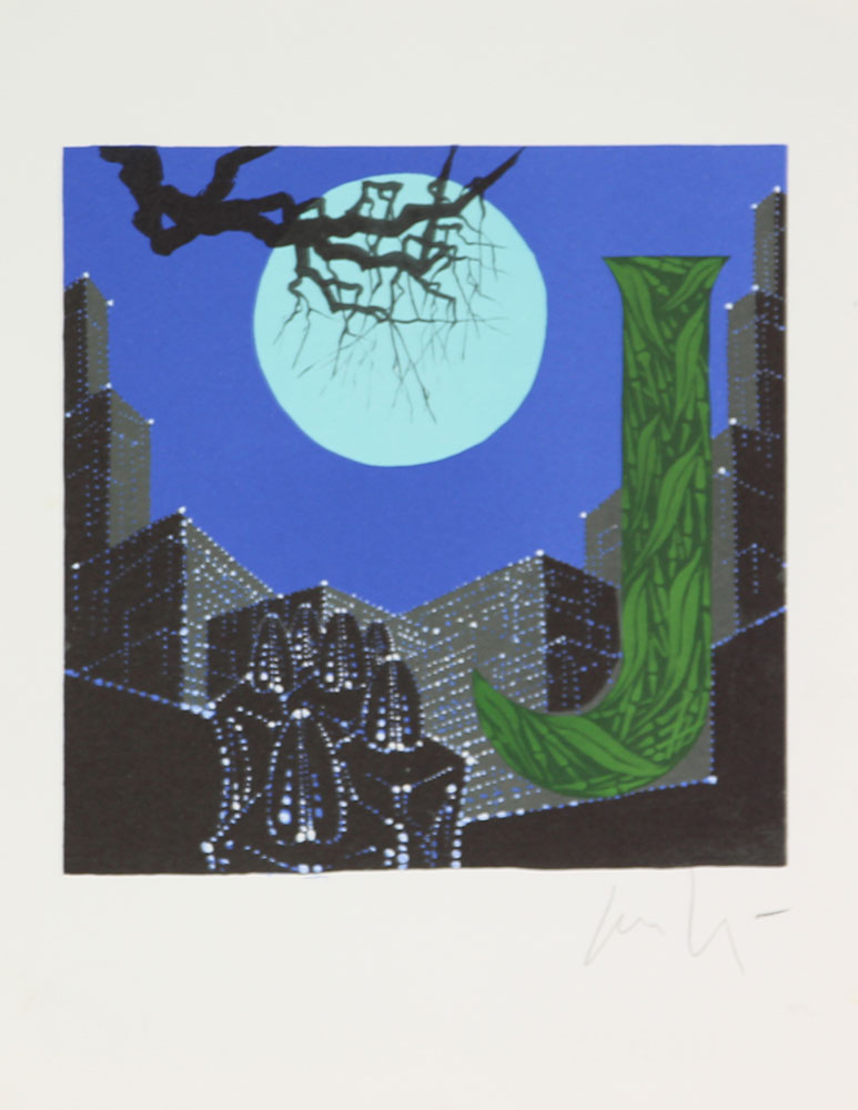 Peverelli Cesare Lettera J (serie "Alfabeto") fotolitografia su carta, cm. 29,5x23, es. 4064/5000 firmata in basso a destra, timbro a secco Bolaffi Arte per autenticità della firma in basso a sinistra