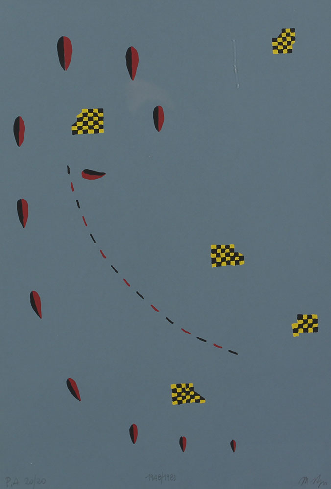 Nigro Mario Invenzione, 1948/83 serigrafia su cartoncino, cm. 48x33, es. prova d'artista 20/20 firmata in basso a destra, datata in basso al centro, certificato di garanzia e autenticità della Casa d'Aste Meeting Art del 02/01/2001