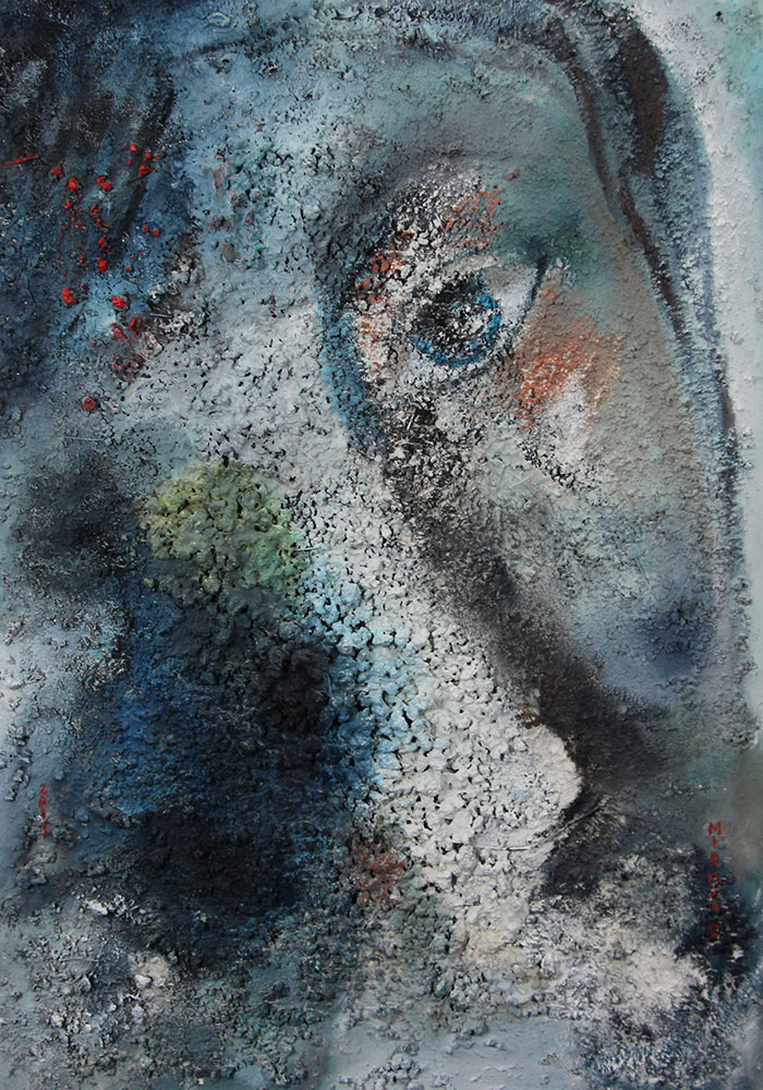 Midolo Cetty Smantellamento Terrestre, 2013 olio e materico su tela, cm. 100x70 firmato in basso a destra, firmato, intitolato e datato al retro, timbri dell'artista al retro senza cornice