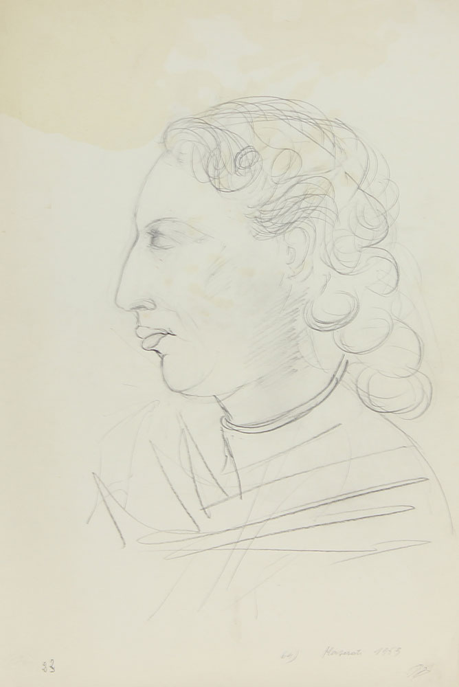 Maserati Mario Profilo di donna, 1953 disegno su carta, cm. 47,5x32 firmato e...