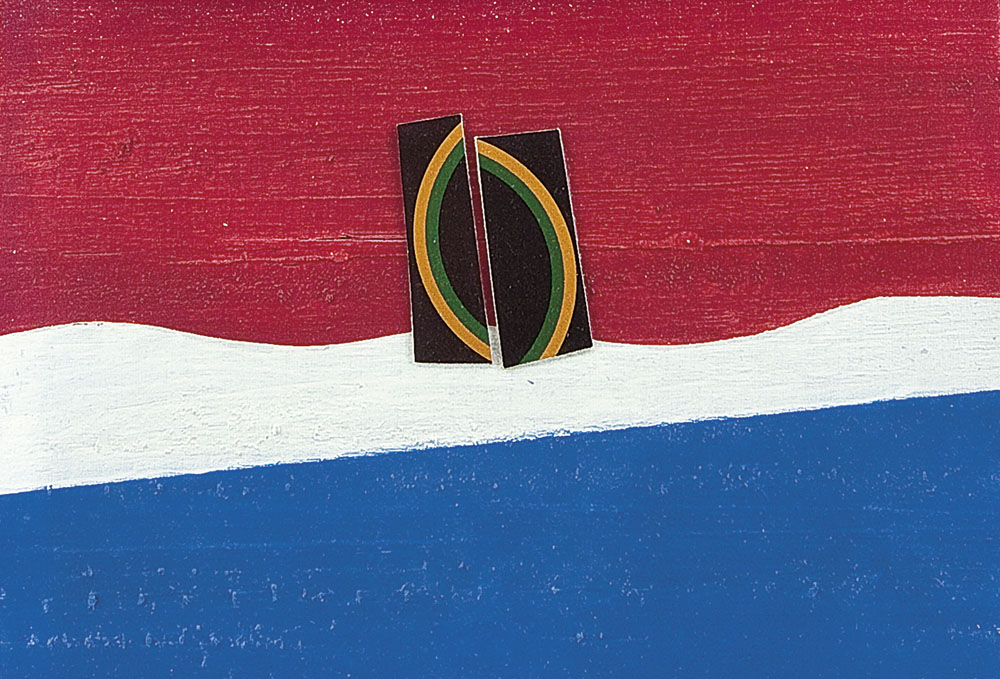 tecnica mista e collage su tavola cm. 17x25, firma e titolo su cartiglio al retro.