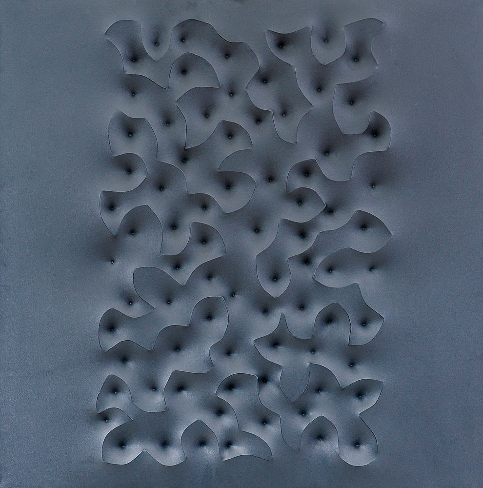 tela estroflessa nera cm. 80x80x4, firma e titolo al retro, dichiarazione d'autenticità dell'artista su foto, opera priva di cornice.