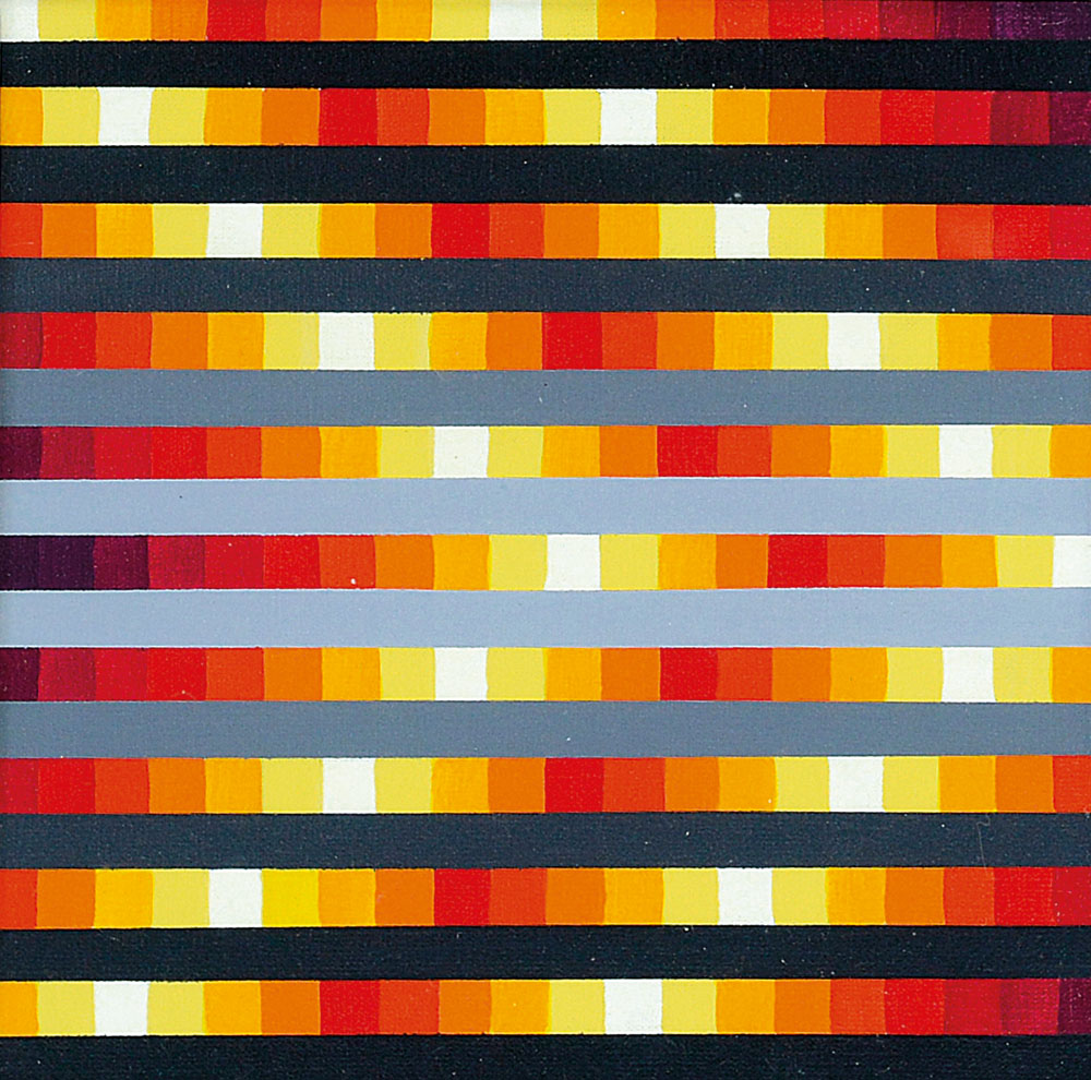 acrilici su tela cm. 20x20, firma, titolo, anno, località (Paris), etichetta e timbro dello Studio f.22 (Palazzolo sull'Oglio-BS) al retro.
