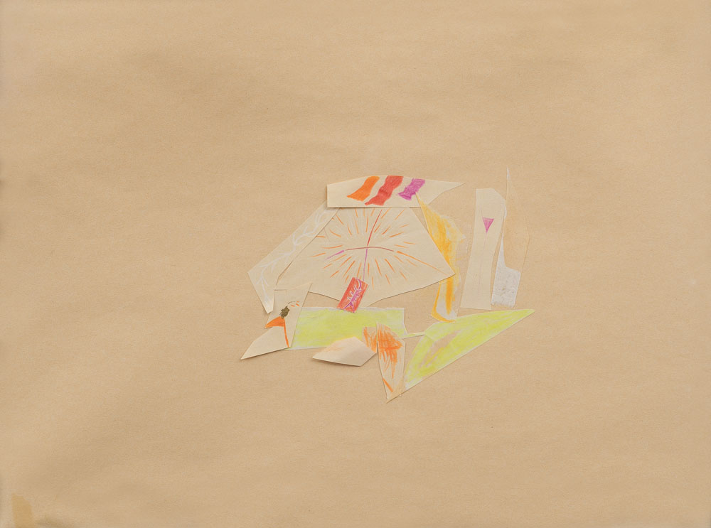 tecnica mista e collage su carta cm. 40x55, firma e anno al retro, dichiarazione d'autenticità dell'artista su foto.
