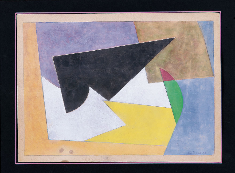 ANNIBALE BIGLIONE Settimo Vittone (To) 06/11/1923 - Pietra Ligure (Sv) 13/04/1981 Senza titolo, 1954 tecnica mista su cartoncino cm. 24x33, firma e anno in basso a destra, presenta delle macchie alla carta.