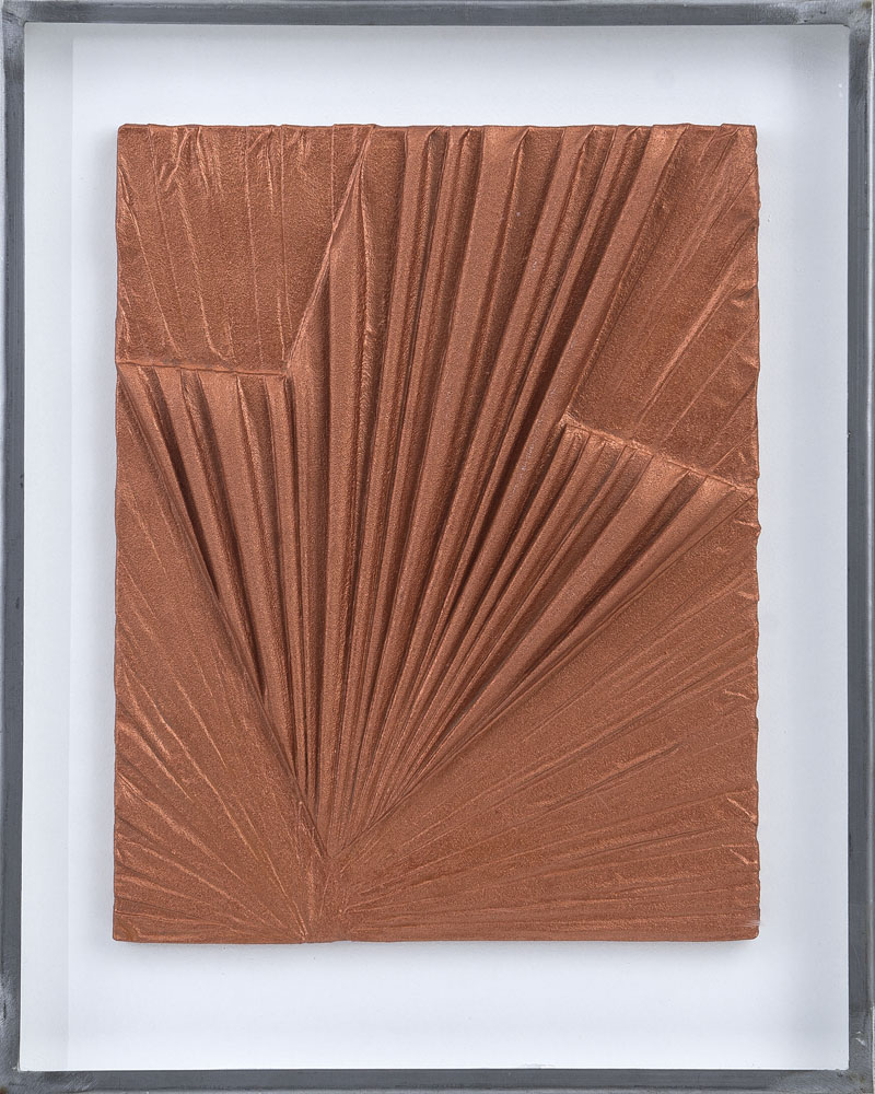 vinilico e sabbia su lamina di piombo operata e applicata su tavola cm. 42x33, con cornice dell'artista cm. 56x45, firma, titolo e anno al retro, dichiarazione d'autenticità dell'artista su foto.
