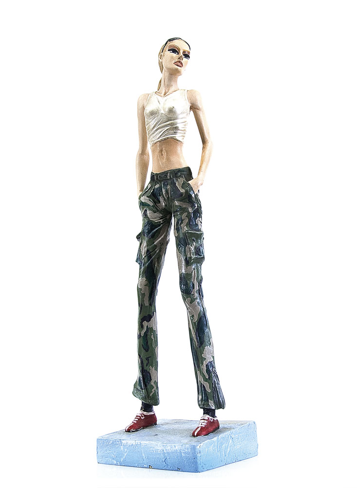 scultura in terracotta dipinta in policromia cm. 60x16,5x16, esemplare unico, firma, anno e timbro Italian Factory sotto la base.