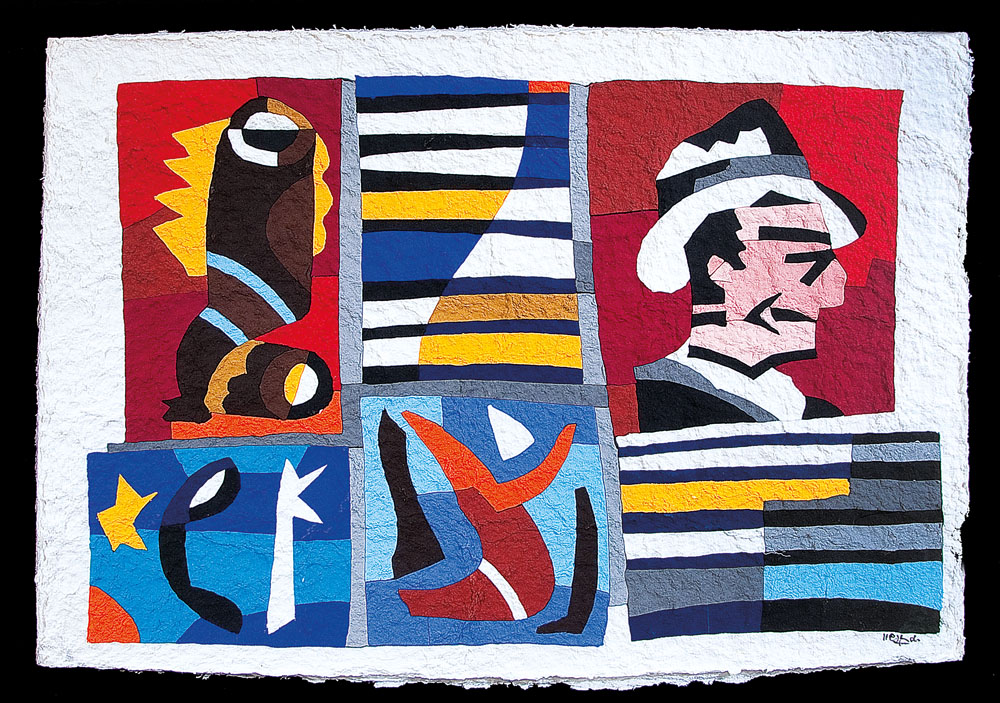 soft painting, acrilici su carta ritagliata (carta "a tino" 100% cotone) cm. 70x100, applicata su tavola cm. 80x110, firma in basso a destra, etichetta dell'artista con titolo, anno e tecnica al retro, dichiarazione d'autenticità dell'artista con archivio n° 1930UNOO03 di Art'è su foto.