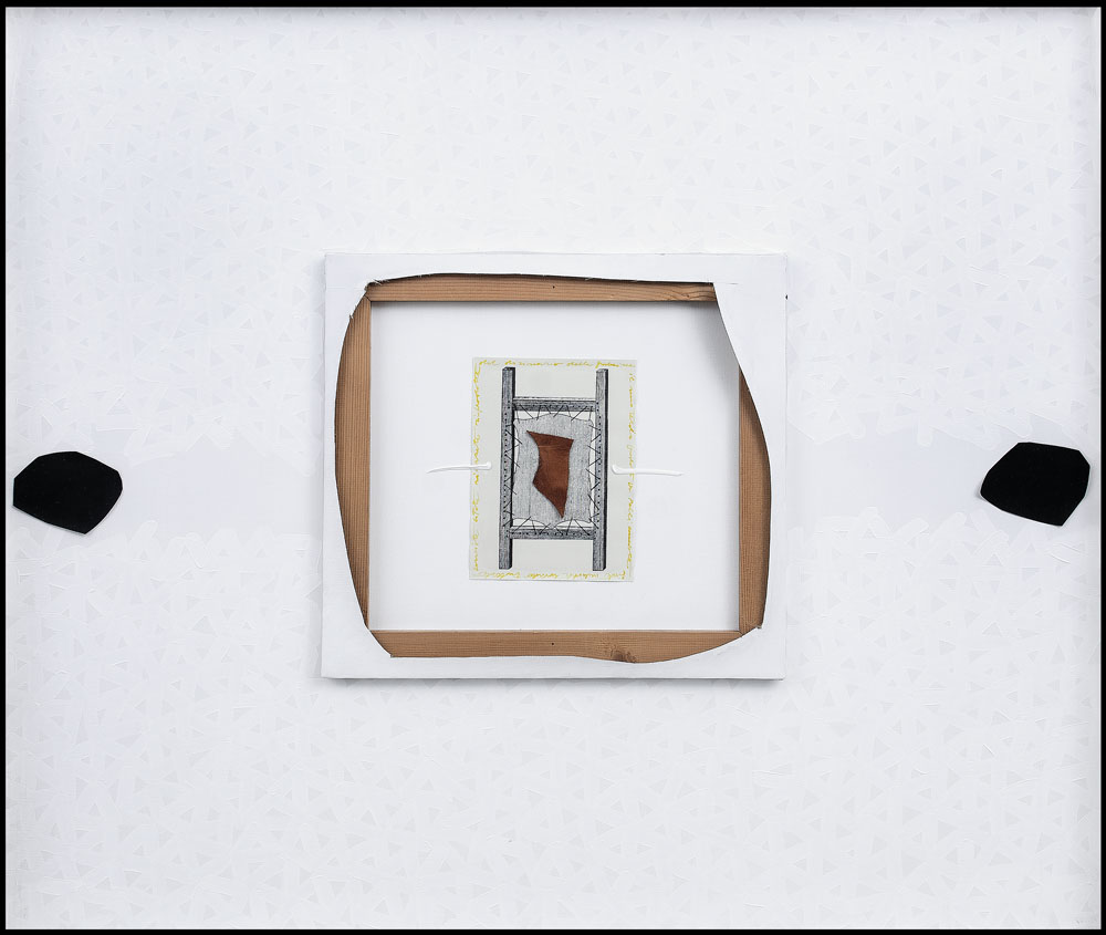 tecnica mista e collage su tela cm. 100x120, titolo, firma, anno e timbri della Galleria Vinciana (MI) al retro.