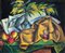 olio su tela cm. 61x73, firma e anno in basso a sinistra, presenta un'altra Natura morta con finestra e paesaggio al retro, opera registrata presso l'archivio Renè Paresce come da certificato allegato, dichiarazione d'autenticità di Rachele Ferrario su foto.