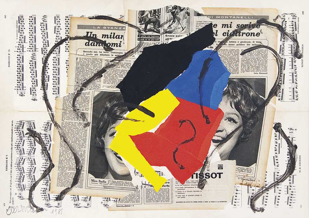 tecnica mista e collage su carta cm. 50x70, firma e anno in basso a sinistra, dichiarazione d'autenticità dell'artista su foto.