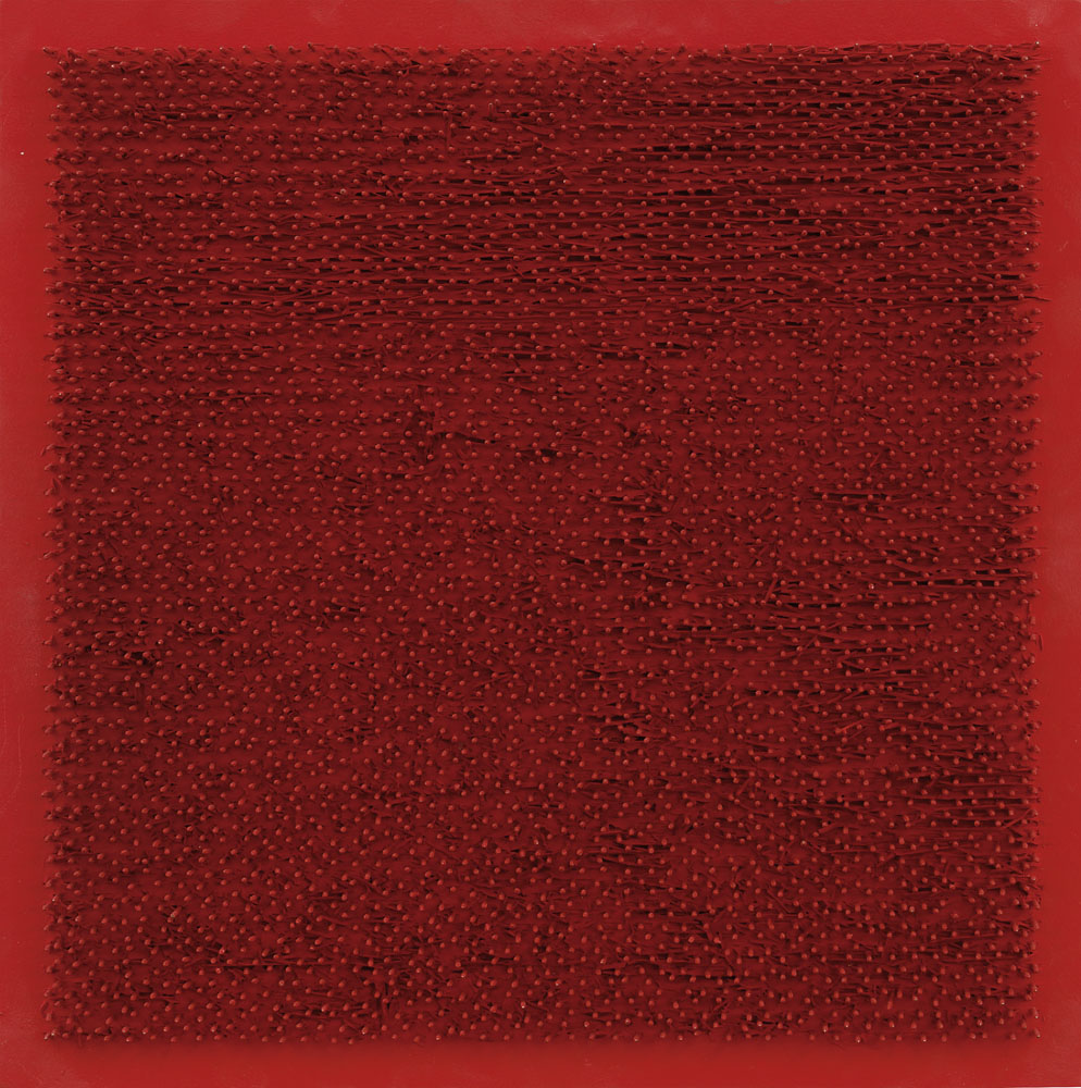 acrilico e chiodi su tavola cm. 50x50, firma, titolo e anno al retro, dichiarazione d'autenticità dell'artista e timbro a secco dell'Archivio Opere di Bernad Aubertin su foto.