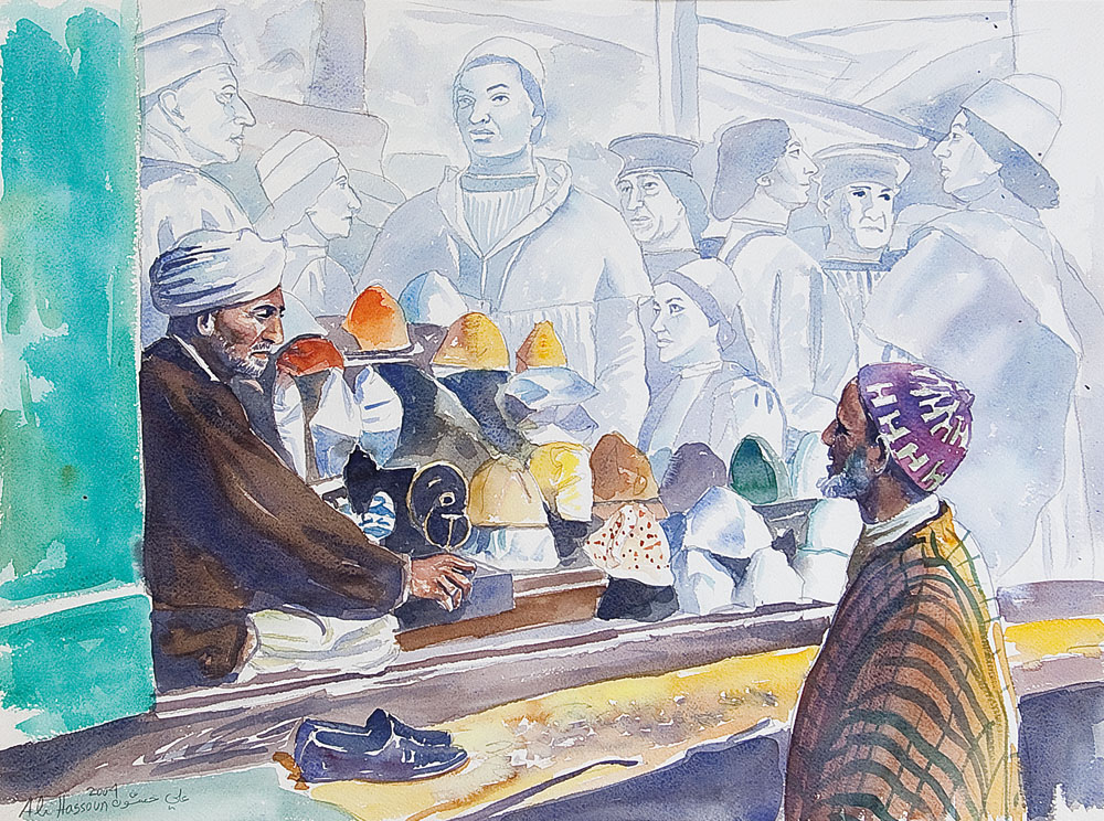 HASSOUN ALI Sidone (Libano) 1964Mercato arabo, 2004tempera acquerellata su...
