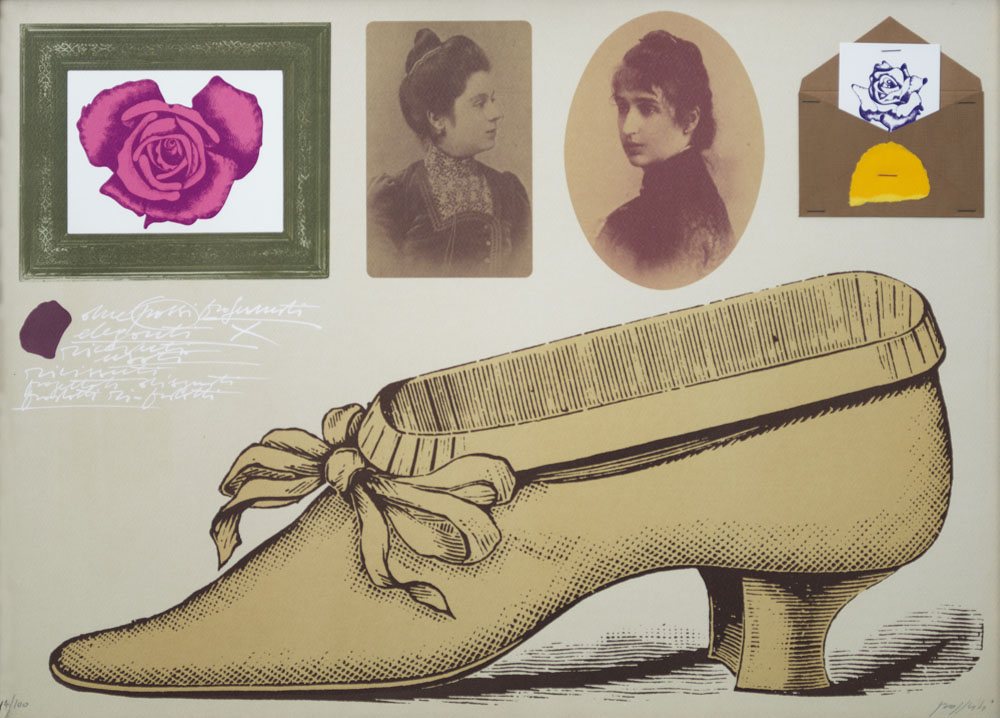 CONCETTO POZZATI Vo' Vecchio (Pd) 01/12/1935 Senza titolo serigrafia e collage su carta cm. 48x66, esemplare 14/100, firma in basso a destra.