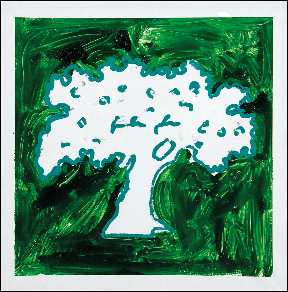smalto e acrilico su tela cm. 80x80, firma al retro, opera registrata presso la Fondazione Mario Schifano, Archivio Generale Dell'Opera di Mario Schifano (Roma) come da dichiarazione su foto e su certificato allegato.