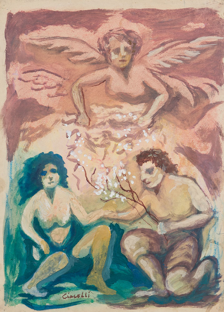 tempera su carta applicata su cartone cm. 45x33, firma in basso a sinistra, etichetta della Galleria Annunciata (MI) al retro.