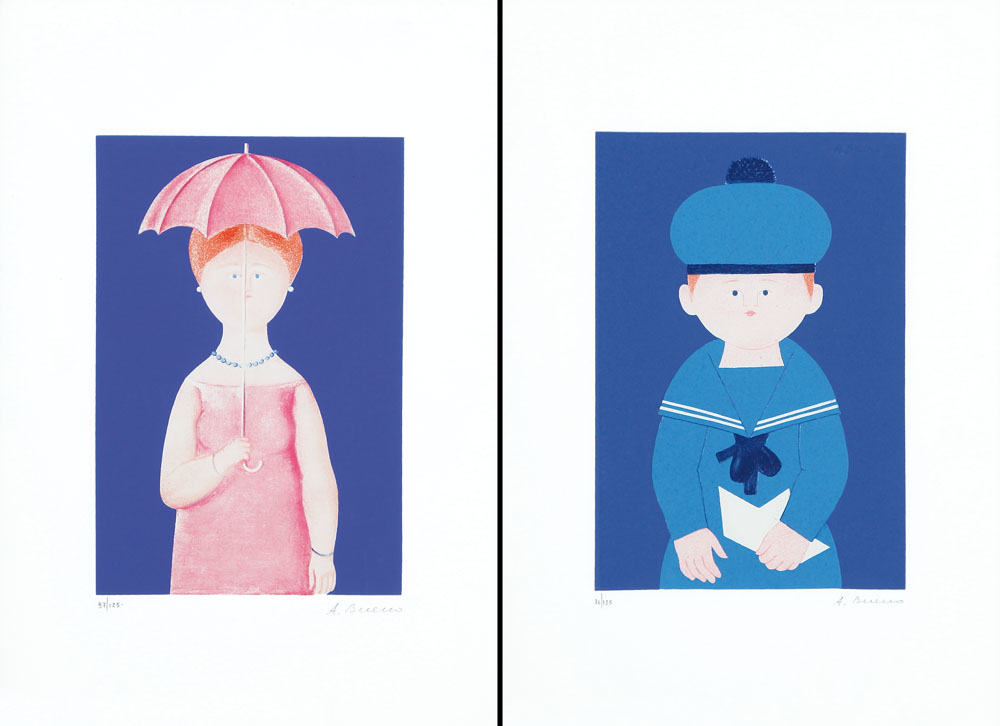 ANTONIO BUENO Berlino (Germania) 21/07/1918 - Firenze 26/09/1984 L'ombrellino rosa litografia su carta cm. 50x35, esemplare 97/125, firma in basso a destra. Marinaretto litografia su carta cm. 50x35, esemplare 10/125, firma in basso a destra.