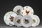 Manifatture diverse lotto composto da sei piatti in ceramica policroma con volatili (gravi difetti e mancanze) Various manufactures. Lot comprising six ceramic polychrome plates (major defects and losses)