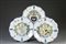 Gruppo di tre piatti in maiolica a bordo mistilineo profilati in azzurro ed al centro stemma nobiliare policromo (diam cm 25) Group of three majolica plates centered by coat-of-arms