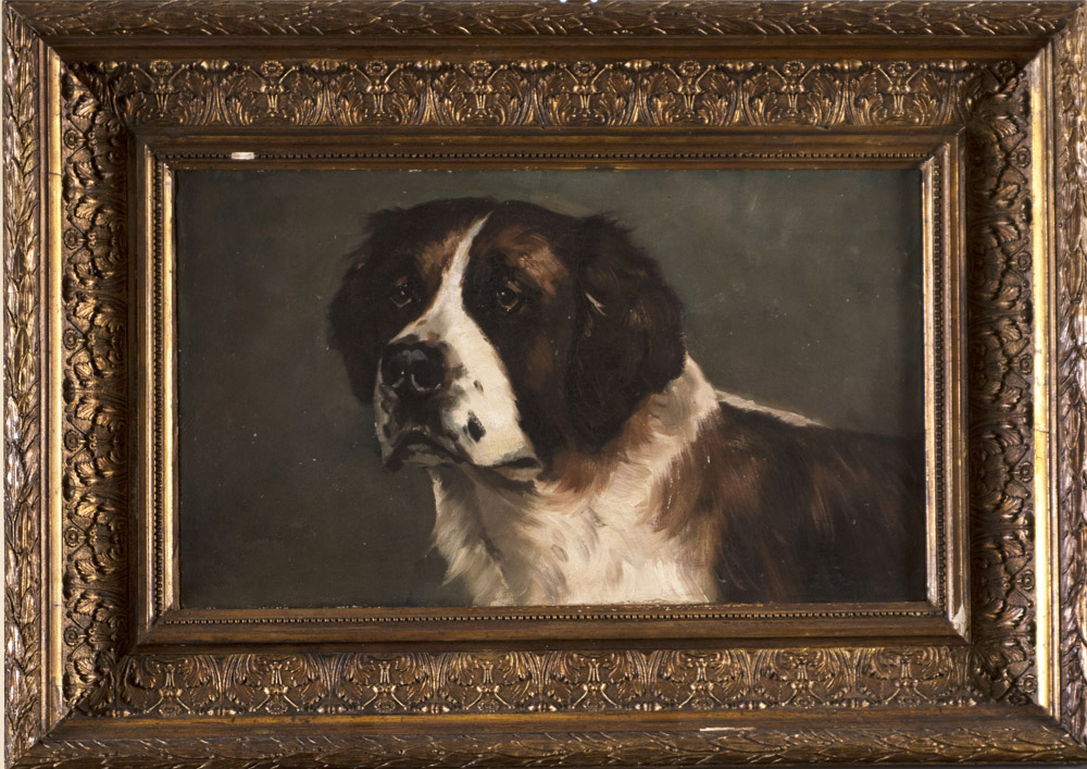 Scuola fine sec. XIX 'San Bernardo' olio su tela (cm 28x46) in cornice di legno e pastiglia dorata (difetti) School of the late 19th century "Saint Bernard" oil on canvas. Giltwood frame (defects)