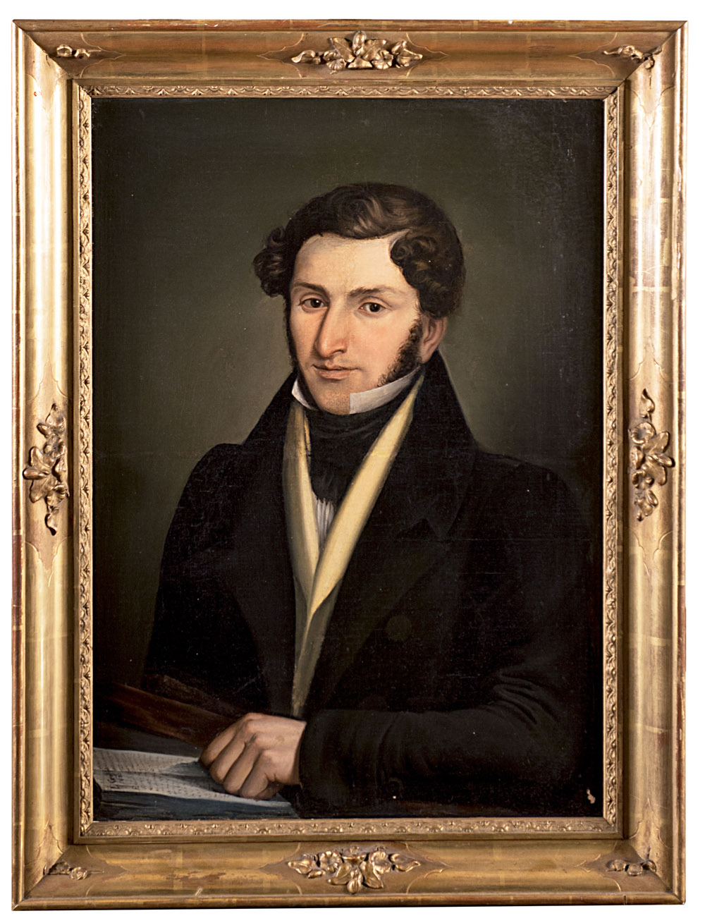 'Ritratto di giovane' olio su tela (cm 63x47) firmato e datato 1830 sul cartiglio (restauri)In cornice dorata "Portrait" oil on canvas. Signed and dated 1830 on cartouche (restorations)