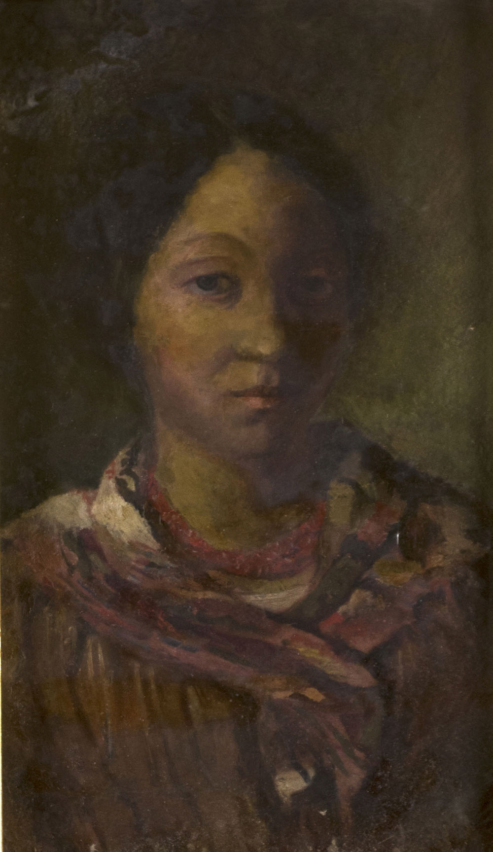 Scuola del sec. XIX "Ritratto di fanciulla" olio su cartone pressato (cm 50x30) In cornice. Al retro dipinto con scena di festa campestre. School of the 19th century. "Portrait of a Girl" oil on pressed cardboard, Framed. To reverse painting of a country fête