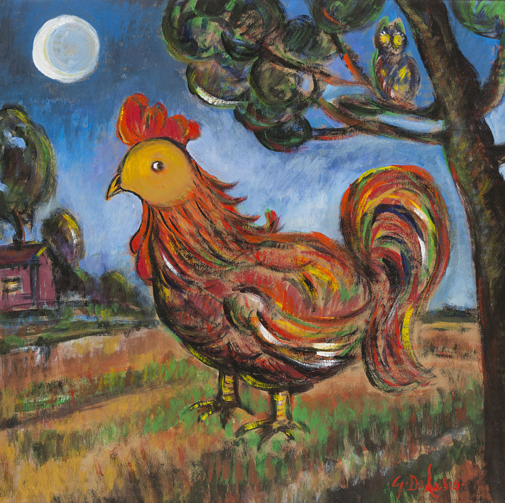 G. De Lasio 'Gallo' tecnica mista (cm 40x40) firmato in basso a destra. In...