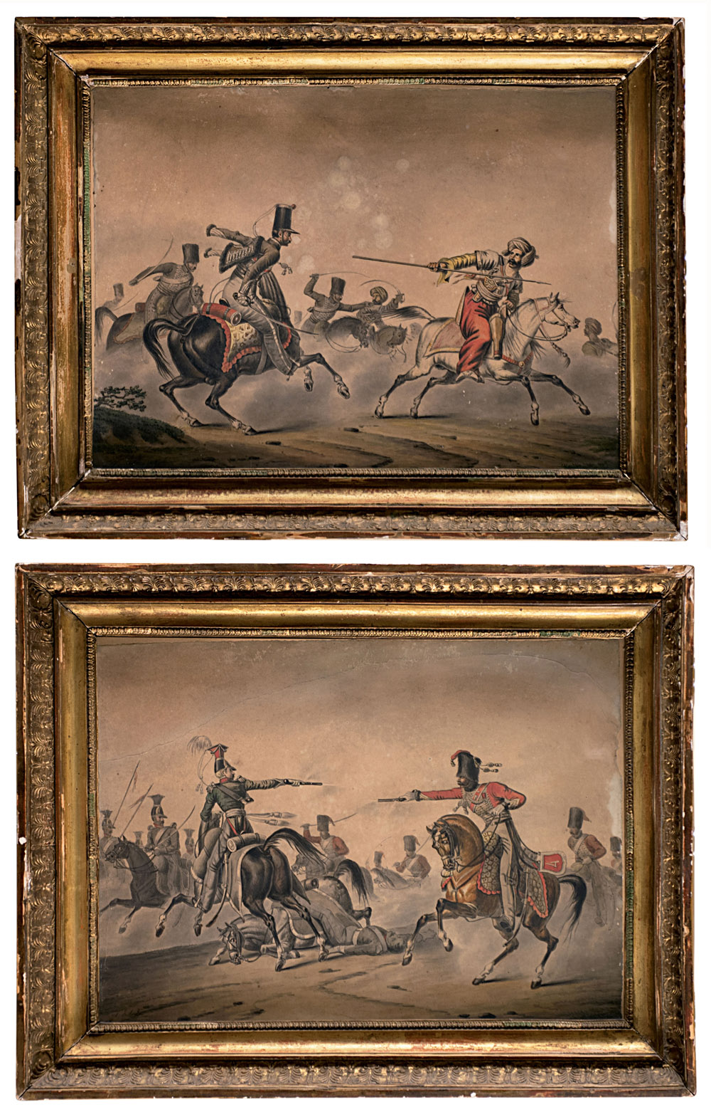Lotto 322 | Scuola francese del sec. XIX 'Battaglie di cavalleria' coppia di acquarelli...