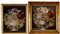 Lotto composto da due ricami a piccolo punto e perlinature raffiguranti vasi...