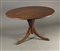 Tavolo tondo in mogano con gamba centrale a colonna intagliata a foglie...