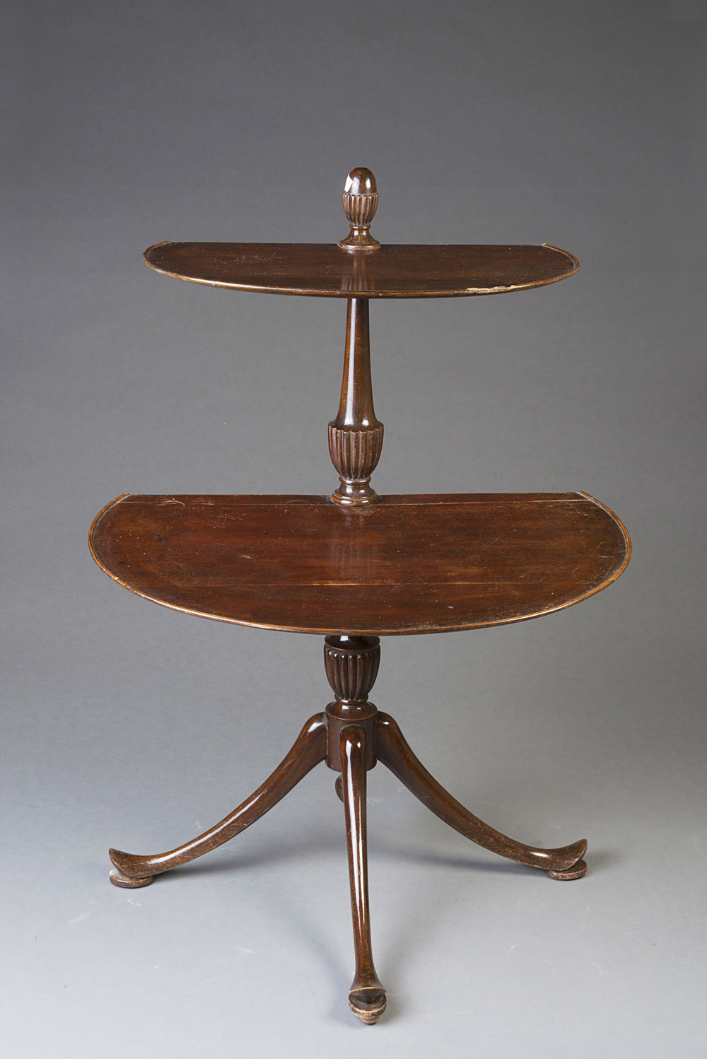Etagere da parete con ripiani a mezzaluna e montanti a mezza colonna tornita...