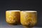 Manifattura francese inizio sec. XX, coppia di cachepot in ceramica a fondo ocra con cervi policromi in un paesaggio (h cm 20x diam. cm 20) French manufacture of the 20th century. Pair of ceramic jardinières