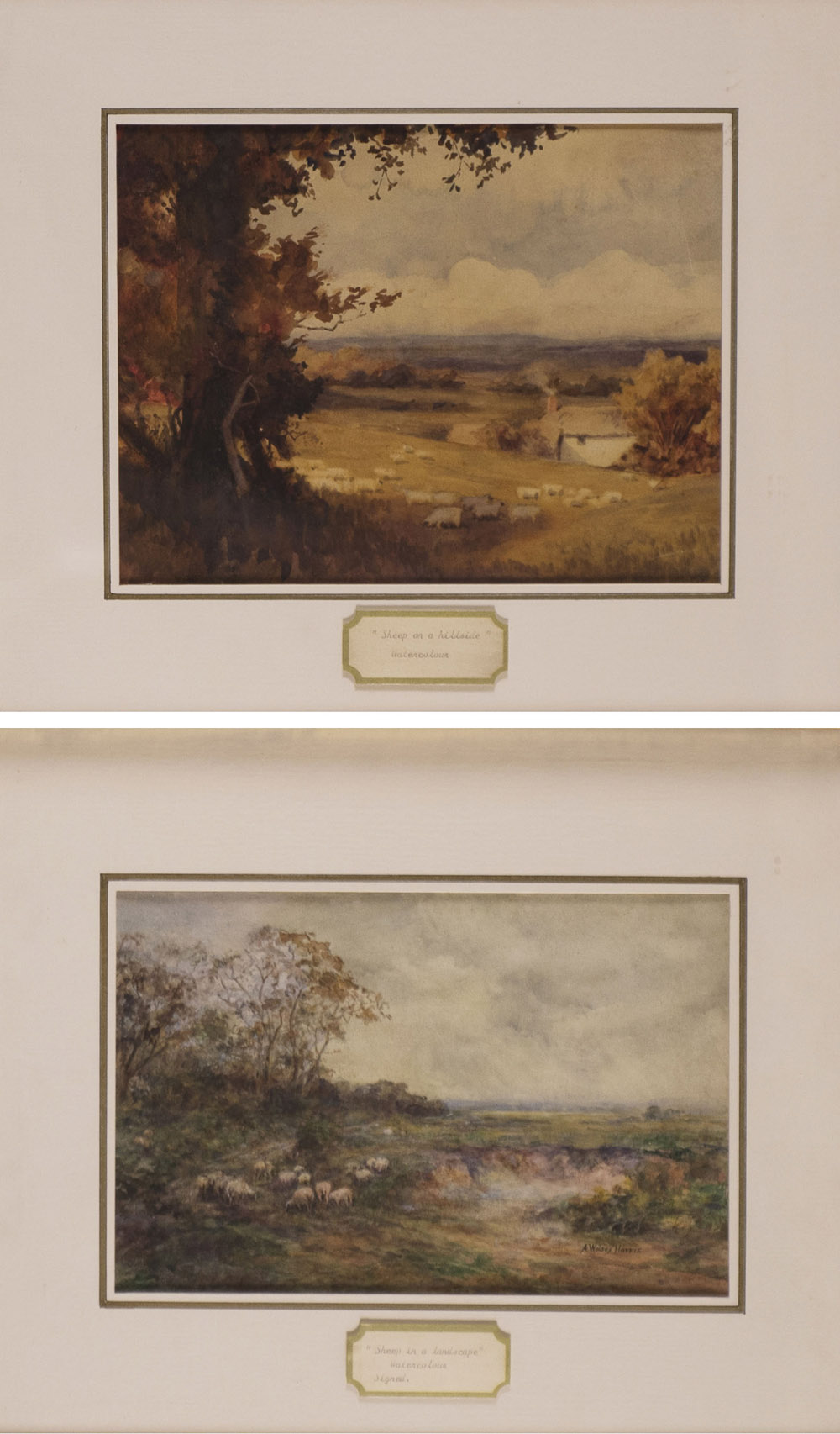 Scuola inglese sec. XIX "Scorci campestri" due acquerelli (cm 18x27) In...