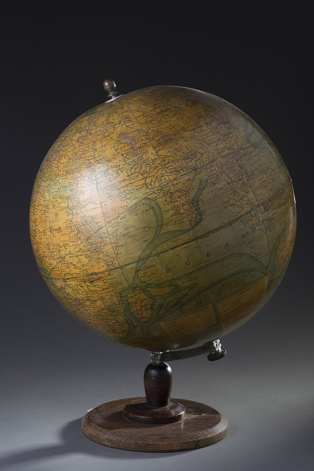 Globo terrestre edito da Girard et Barrere Parigi poggiante su supporto...