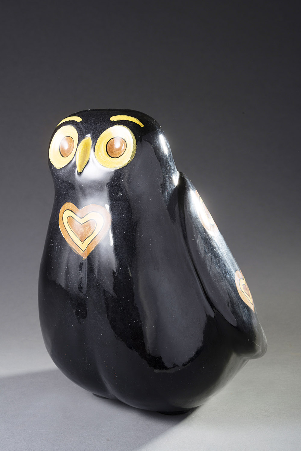 Manifattura italiana 'Gufo' statuetta in terracotta smaltata a motivi...